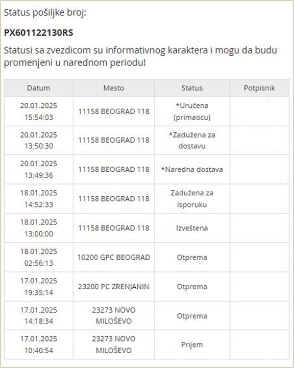 Hvala što koristite usluge Pošte Srbije.Znači..., tek "ponedeljnik"..., a za "pridPostaviti" je - možda ni "ondak" !!!