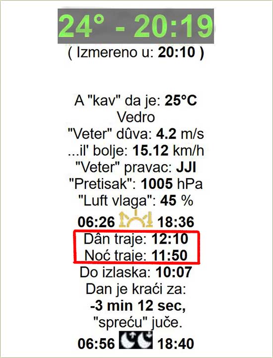 Međutim, "podatci sas metrološke" stanice NM "sajita", jasno "poKazivadu" - 20-s't "minuti zazora", a u korist dâna...