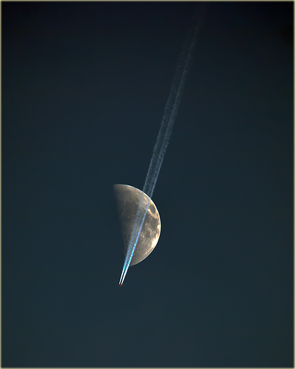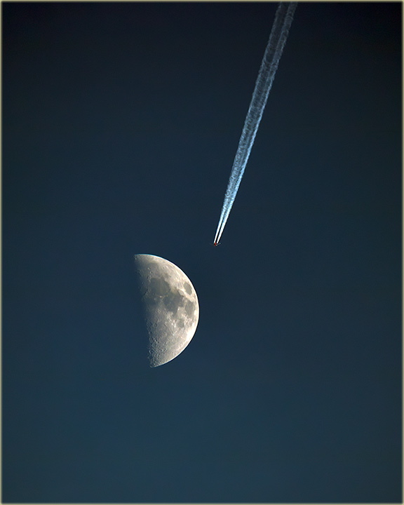 Opis: Čekajući, da padne noć, kako bi "uSliko" neku "kometlu", povremeno sam "glêdijo" u Mesec , jer je sij'o, a baš kad' "neTreba" i u "jedan" mâ', sam "sPazijo" mlâzni "avijon", kako leti ka njemu !!!