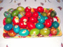 "NaSliku", na "šarenu tacnu, bravon" fârbom su prirodno ""farbata" jaja, "sas lukovinom", a "naMesto priSlikanica" se "mećedu" listovi "kakve" biljke, koji se "posla" farbanja "skinedu" i "ondak" se "uGlancadu sas zejtinom", da se "sjâjidu. Malko gorena" desno, su "friško" bârena" jaja i tek po koje "farbato, sas" veštačkom fârbom "iz kesice", a na koja se "posla udari" najlonska "priSlikanica" i nji' vidite u ona dva plastična "čančeta, gôrena" levo. Jedno od ovi "jajeta", će biti "čuvarKuća", to jest', ostaviće se "diGuđ" na "vîdno mesto", da "kav" čûva kuću, do "sledećog" Uskrsa i "zaTo" je tako i "kršćeno"...