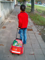 Opis: Za "koji dan", će "renovirata" LukOil-ova "bendzinska" pumpa, najzad početi "sas" radom. "NaSliku" u gro-plan', ispod breza, vidite da se "otâče prvo" gorivo iz "kamijona" cisterne...