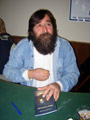 Pažljivo, da "neBi primetijo", posmatr'o sam "štručnjaka" - u licu je "bijo dôbrano podBuo, kav" da je posle kakve pijanke prerano probuđen, a ispod "šilta", od nemarno "nataknutog" kačketa je im'o velik', skoro modar nos, onako "sas" velikim porama ( kasnije, kad' sam "narastijo", sazn'o sam i kako se "to dobljava"... ).