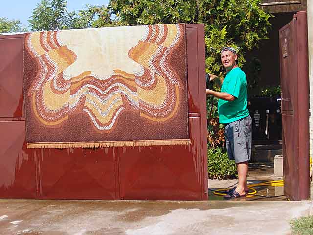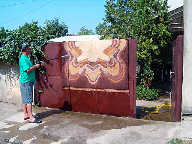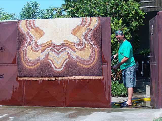 Opis: Već "odavna pecam priliku" da Vam "uSlikam" i pokažem "zaSta" nam sve služidu "avlinske" kapije, pa tako "izmeđ ostali" i za pranje "tepika". Domaćice ga "pribacidu priko" kapije, operedu "prePodna", pa kako Sunce ide dalje, tako ga i osuši "sas" jedne i druge strane...