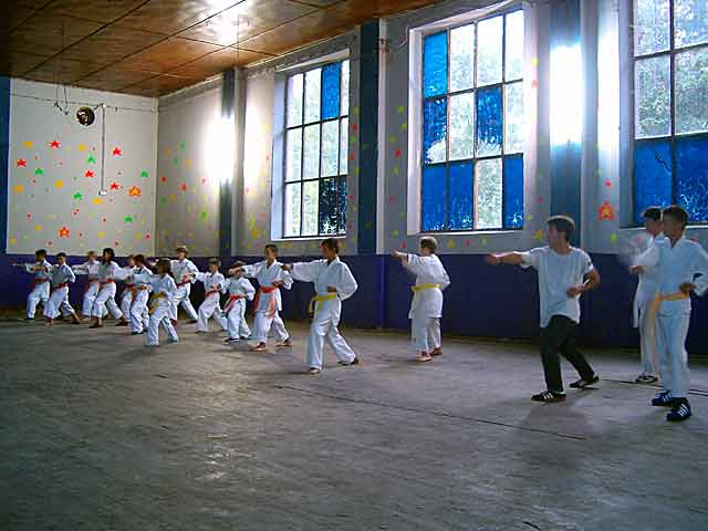Sledeća je posebno interesantna - svi su raspoređeni u tri kolone, a samo "prvi red" izvodi kate i to u jednakim, "sinkronizovanim" potezima...
