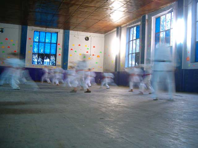 "Kav" što vidite, "treniradu na stari", prljavi parket, a većina je bosonoga, kako to pravila "nalažedu", međutim ispostavilo se da "moradu da koristidu" ovaj prostor, jer je u "njinjo malo potkrovlje" nemoguće izvesti sve kako treba.
