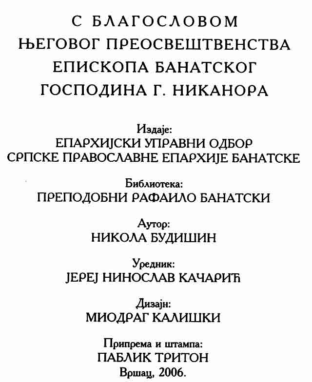 Udžbenici su izdati sa blagoslovom Njegovog Preosveštenstva Episkopa banatskog G.G. Nikanora, od strane Eparhijskog Upravnog odbora Srpske Pravoslavne Eparhije Banatske.