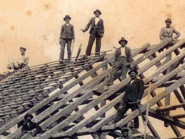 Dragan Belić, 08.02.2006-te - Evo, spremajući ovaj prilog, prepozn'o sam svog "prandedu" Svetozara Belića ( brka, desno na "zadnju fotografiju" - stoji izmeđ "rogova" od građe... ), koji je "bijo" tesar "poStruki" i verovatno je "vodijo" tesarske poslove. Pomenut je na dve Slike dana i to od 21.07.2005-te - Klinovi... i 11.02.2006-te - Čuretina za kost...