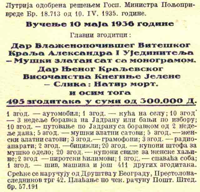 Ustvari, lutrija je odobrena 10.04.1935. godine, a "vučenje" je održano 10.05.1936. godine...