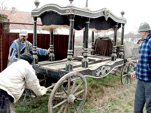 Opis: Fotografije koje nam je posl'o župnik Katoličke Crkve, gospodin Boviz Laslo, a radi se o mrtvačkoj kočiji ( "po madžarski - halottas kocsi... ), koja je data "naPoklon budućom novoMiloševačkom" muzeju...