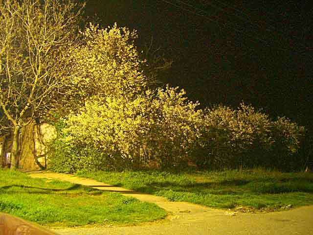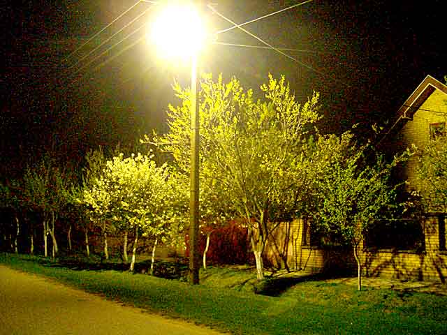 Opis: Zadnji' dana uveče je baš prijatno, a posebnu draž "dajedu" procvetale voćke, pa evo nekol'ko noćni' fotografija "zaVas sas" miloševački' "sokaka"...