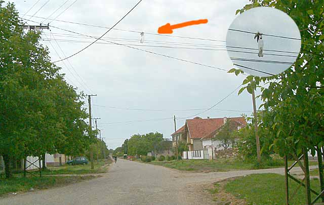Verovatno je često kidanje telefonskog kabla dosadilo "vlastniku" kuće na "ćošak izmeđ Najduže seoske i Farkešove ulice, pa je "postavijo" ovaj znak upozorenja u vidu plastične flaše od dva litra: