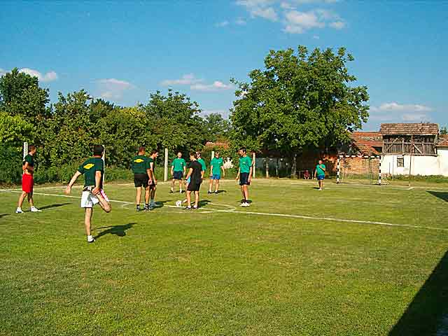 Opis: Juče "poslaPodna"je poč'o "tradicijonalni fuzbalski" turnir u "organizaciju" kafića Galaxy. "NaSliki" su prve dve ekipe koje su počele turnir: levo je ekipa "dućana" Banat S.T.R., a desno kafića Varga...