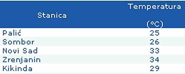 To su Vam izmerene "tamparature" iz nekol'ko vojvođanski' varoši u "jedanajst sati prePodna, skinute sas" zvaničnog sajta Republičkog Hidrometeorološkog Zavoda Srbije. Obratite "na pažnju" razliku "tamparatura" izmeđ Kikinde i Zrenjanina !!!
