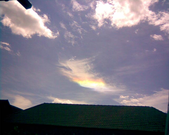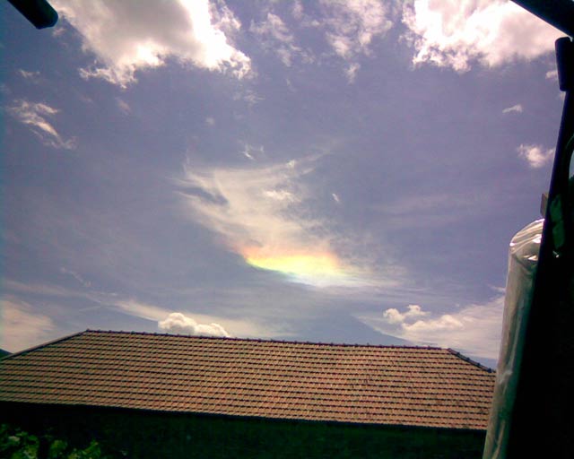 "Petek", 06.07.2007-me, "okolo polak" jedan "poslaPodne", a "zaDesijo" sam se, da 'prostite u "prokot", kad' sam "primetijo" nešto čudno "naNebo":OBLAK U DUGINE FARBE !!!