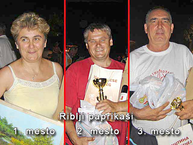 1. Jožef Greguš iz Mužlje - Predsednik žirija 2. Veselin Vuksanović iz Kikinde 3. Dragan Terzin iz Kikinde 4. dr. Branislav Vlahović iz Novog Sada 5. Ratko Stojnić iz Mužlje Imao je vrlo težak posao. Trebalo je oceniti 26 ribljih čorbi i 13 ribljih paprikaša. Ukupno 39 kotlića. Nisam ih pitao, jel' moraju svaku i da probaju.