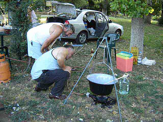 Orgnizator je podelio takmičarima ribu i takmičenje je počelo. Kako to uvek biva, izmedu takmičara, zbijaju se šale na račun majstorstava.