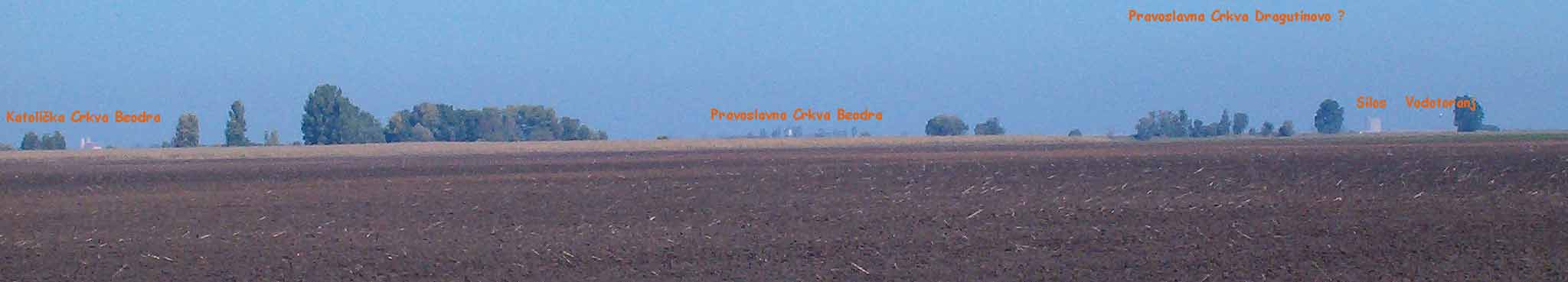 Opis: Mada je "kodNas sve ravno, kažedu" da se Novo Miloševo "izDalje" vidi čak i "sas" puta "Bašajid" - Novi Bečej, udaljenog "šesnajst" kilometara i to tačno u "pravac" juga - pa da vidimo kako to izgleda "uVeličato":