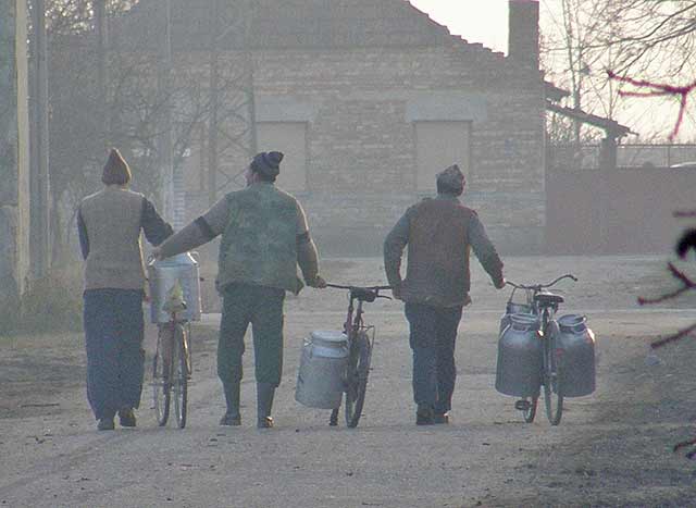 Opis: Evo jedne od uobičajeni' slika "kodNas u Miloševo," kad' se "zajtra i pridVeče" nosi mleko u "otkupne stanice, oČem" smo već pisali naSliku dana od 30.11.2005-te...