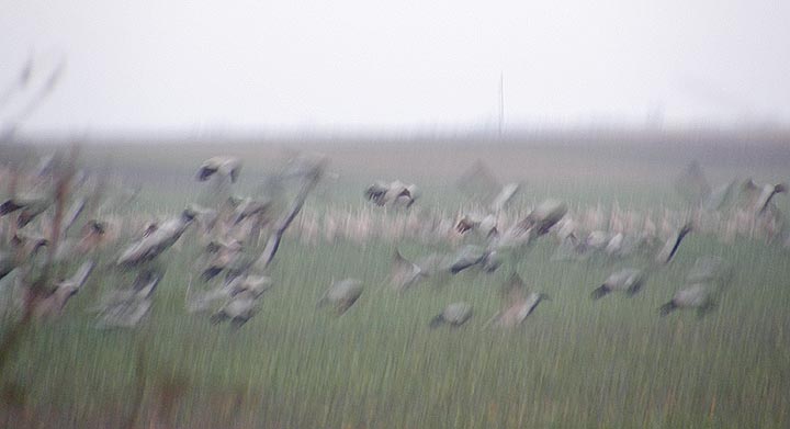 Jes' da je ova fotografija loša, ( bolje nema... ), no na osnovu nje možete "viditi" da sam naiš'o na dva velika jata, od koji' prvo uzleće, a drugo "izaNji" je u "momenat slikanja" još bilo "naZamlju" i dok sam se snaš'o, već su "obaDva" bila "uVazduhu"...