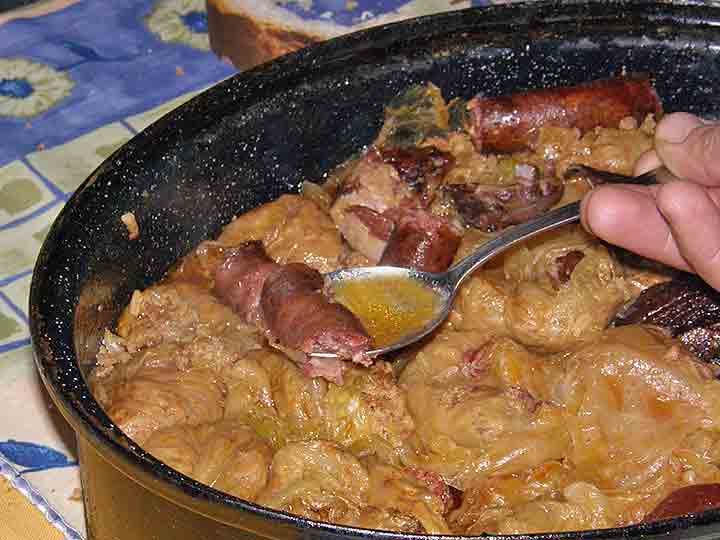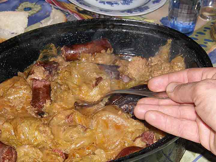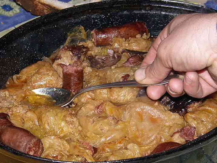 "Patijo" se ja "okolo safta", što ono kažedu - "kav" Hristos, a sarma tek' onako izvađena iz "paorske" peći, pa se sve puši, pa sve onako lepo "miriši", a ja nikad' da završim "sas sipanjom", pa sam još i zauz'o red drugima, sve dok najzad domaćin nije "primetijo" moje teške muke: