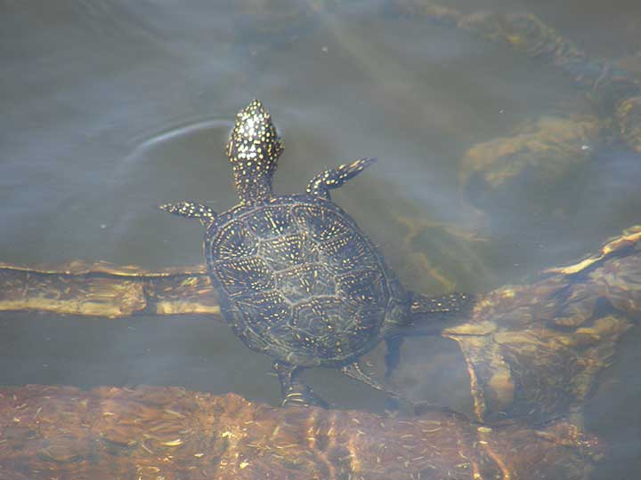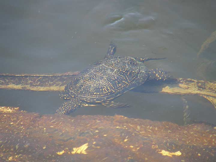 U pitanju je barska kornjača, a tol'ko je bojažljiva i oprezna, da je o'ma' po uočavanju "slikera klisnula natrag uVodu"...