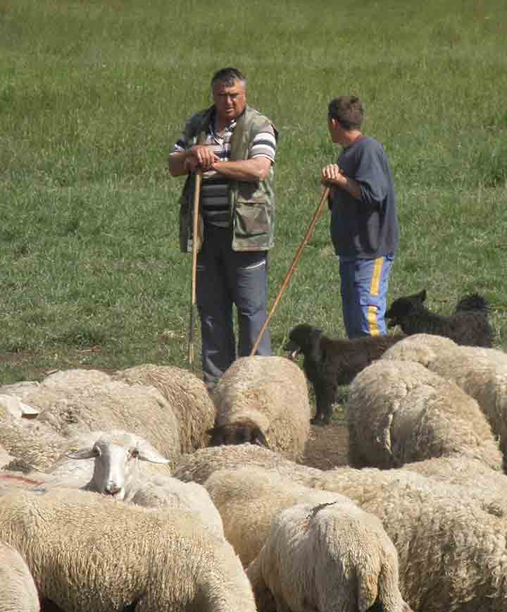 Ovce su obično mirne, no pogledajte onu levo, koja "kav" da kaže:Ej ti..., o'ma' da si mi "vratijo" moju vunu !!!