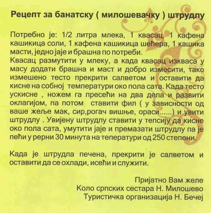 Najčešće, a i obavezno se "sPravlja" nedeljom "prePodna", a služi se "saSirom kav" predjelo "pridSupu" i "kav" poslastica "posla" nedeljnog ručka "u vidu gibanice "sas" makom il' "sas rogačom" il' "sas" višnjom il' "sas orasima"...