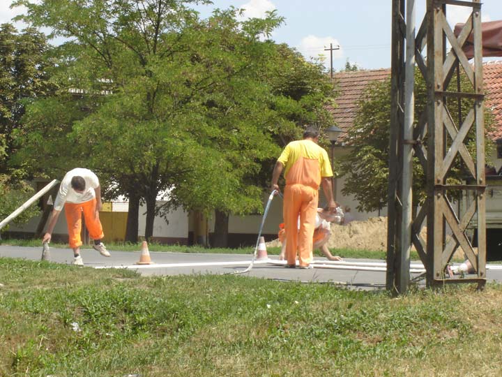 Farbanje "savobraćajni' linija na Glavni sokak" se radi "jedared" godišnje, pa Mesna zajednica "tempira" da to "budne" nekol'ko dana pre Slave, što se mož' i "viditi naSliku"...