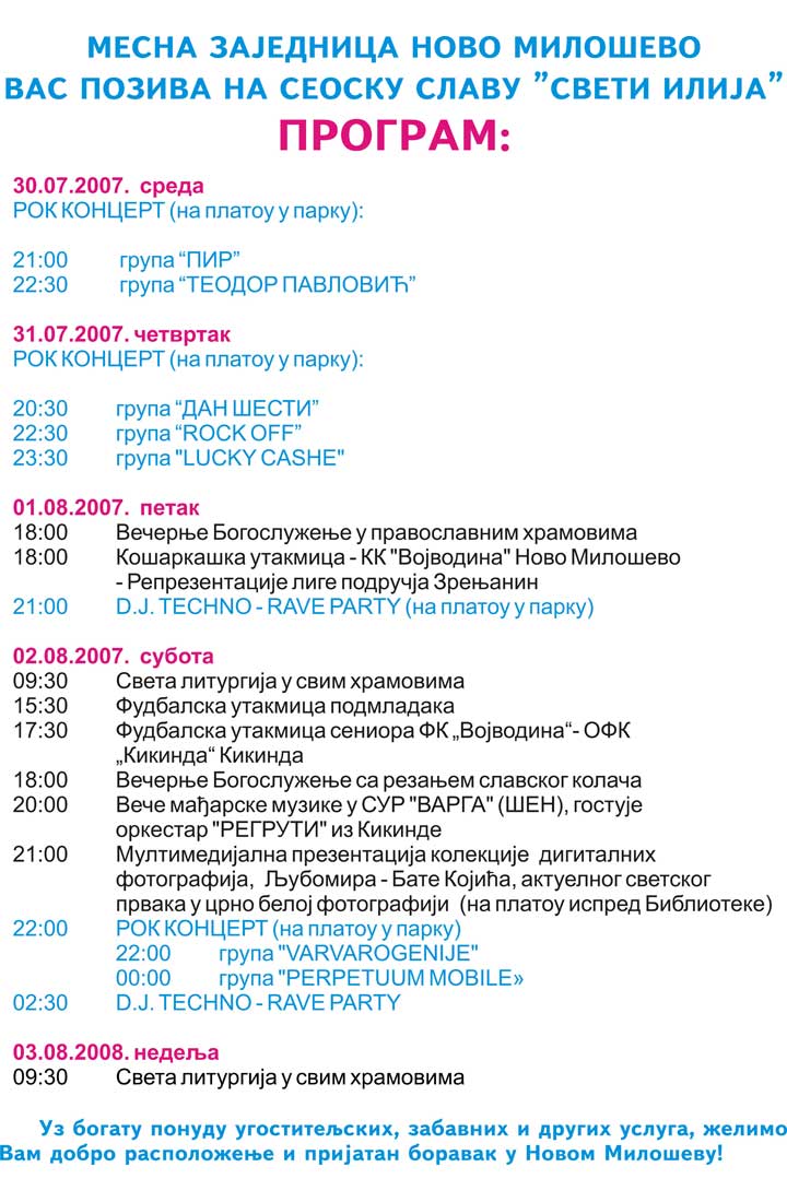 U ime Mesne zajednice Novo Miloševo, a i "svojo" lično ime, želim da Vas pozovem "naNašu Slavu" i da Vam poželim lep provod!Puno pozdrava za sve posetioce sajta!