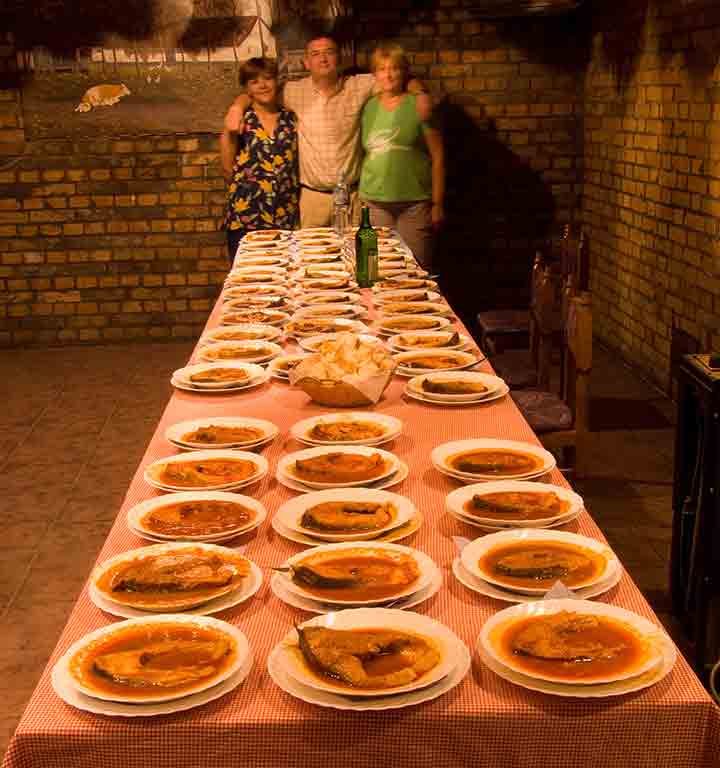 "NaKraj se vasPostavilo", da se za ocenjivanje "preJavilo" 39-et riblji čorbi i "14-jest" riblji paprkaša ( "uPrednji" plan na "sledeću fotografiju" su paprikaši, a iza su odvojene čorbe... )...
