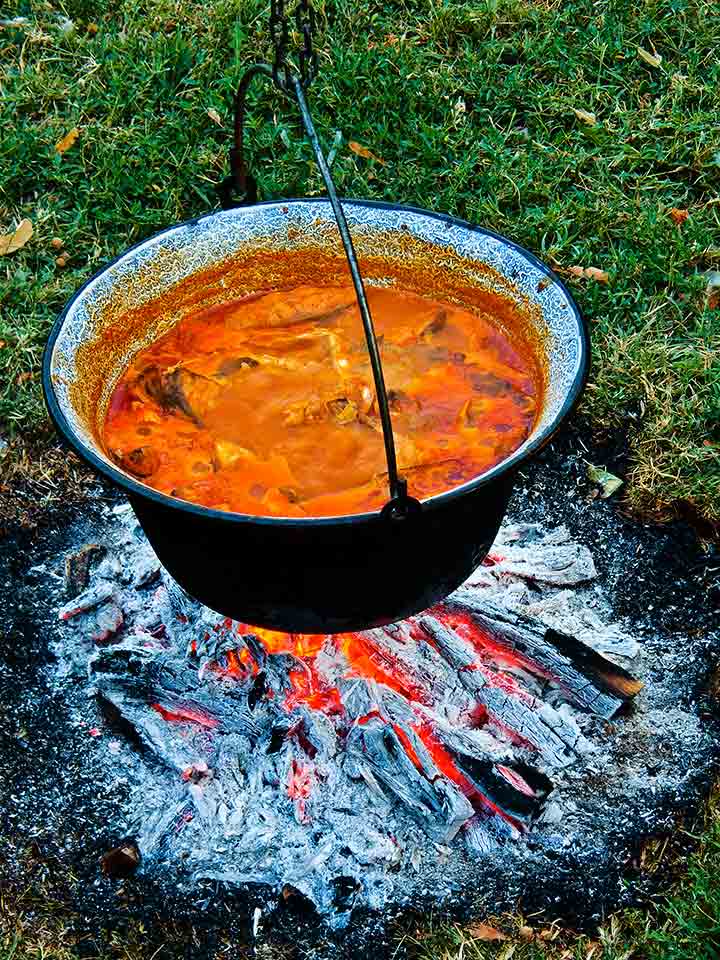Pogledajte boju žara i boju riblje čorbe - to je sve "Cunce" darivalo,,, i vrelu, purpurnu "farbu" vatre i ljutu, crvenu boju tucane il' svejedno mlevene paprike vojvođanske..., najbolje "banatcke" !!!