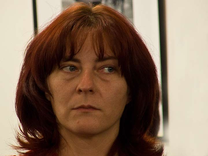 ..., koja je pozdravila prisutne i o'ma' dala reč dr Željku Škrbiću, profesoru na "novosadcku Akademiju" umetnosti, "odceka" za fotografiju.