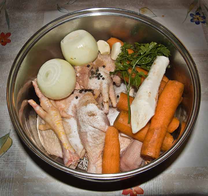 Dosad' navedeno je dovoljno da se skuva supa u "lonac" od jedno šest litara, na "čijo dno metnete meso, najčešće "živinjsko", uz napomenu da - što matorija koka, a ono bolja supa !!!