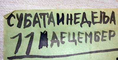 Evo jednog od "mlogi" eksponata - "plekata pisata sas" crnim tušom "negdi izmeđ" dva "svecka" rata, "neZašiljenim", guščijim perom, a na "zelen papir, atprilike", veličine "današnjog" A3 formata...