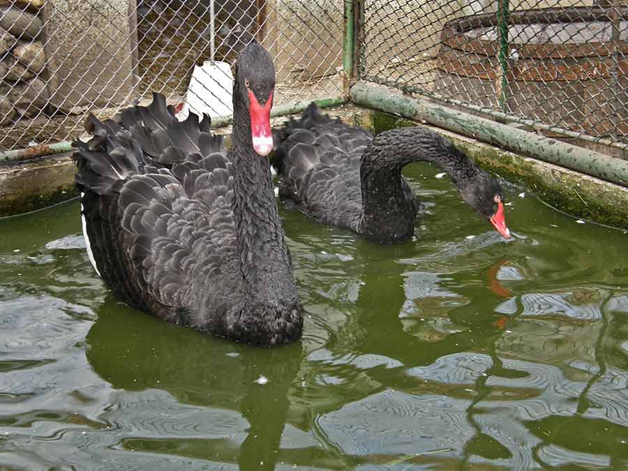 Sledeći par je vrste - AUSTRALIJSKI CRNI LABUD, koji "naStanjiva" južnu i istočnu "Oustraliju", Tasmaniju i Novi Zeland, starosti dve godine i još su polno nezreli...