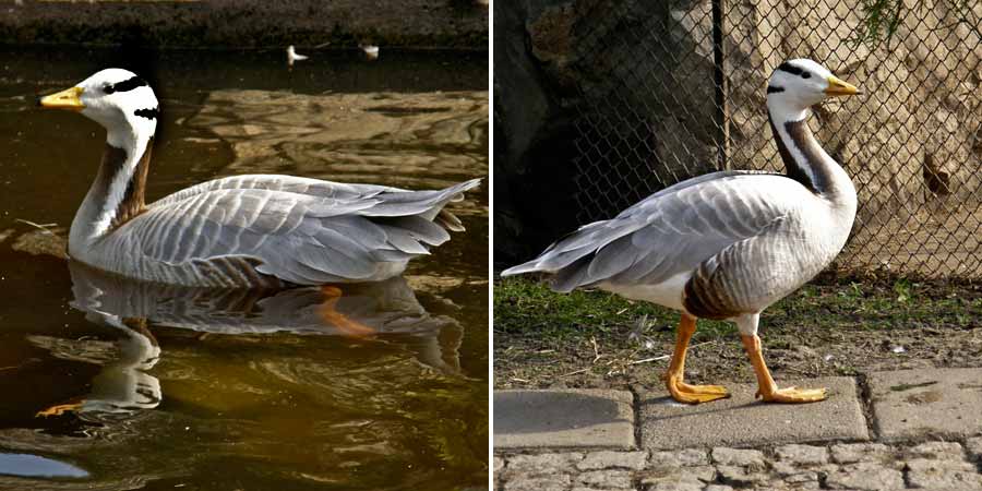 Sledeći par su INDIJSKE GUSKE, na osnovu čega o'ma' znate odakle su. Interesantne su "zbogTog" što "priLećedu" Himalaje da bi se "gnjizdile" u Mongoliju i severni deo Kine. Po gustom perju se vidi da su dobro zaštićene od 'ladnoće, jer zamislite kol'ka je niska "tamparatura" na "otprilike" devet 'iljada metara nadmorske visine. Kažedu da "spreću" tela "imadu" ogromno srce, koje otkucava i do "400-sta" otkucaja u minutu, koje i u razređen "luft" pumpa dovoljno krvi, a samim tim i kiseonika "uGlavu", mišiće i ostale organe...