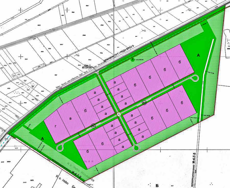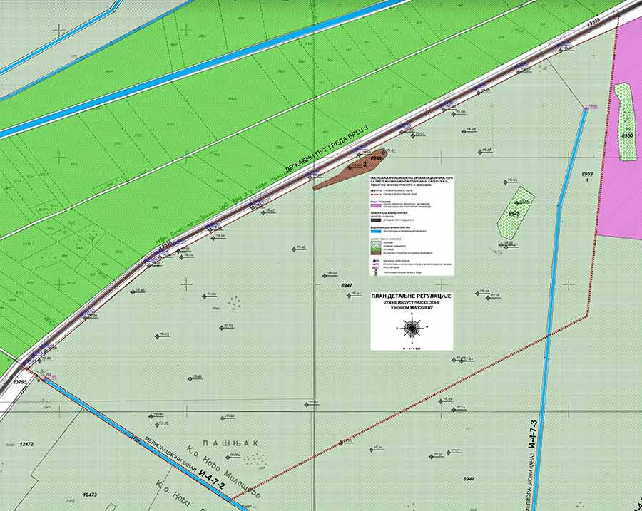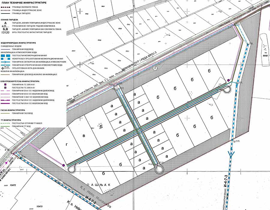 E..., evo kako bi to sve trebalo da izgleda: "lila" farba "preKaziva" parcele u "indstrijsku zonu", bela "putove", a zelena - zelenilo !!!