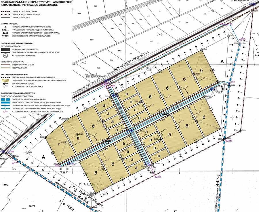 Dalje, evo i plana za "savobraćajnu" strukturu, "atnosfersku" kanalizaciju, regulaciju i nivelaciju: