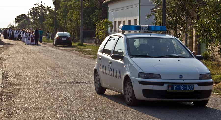 Tek kad' se išlo glavnim "sokakom, vidlo" se da je kolona "zdravo jako" dugačka. Momci u zelene majice su "izNašog" Dobrovoljnog "vatrogastnog" društva, "kav" obezbeđenje...