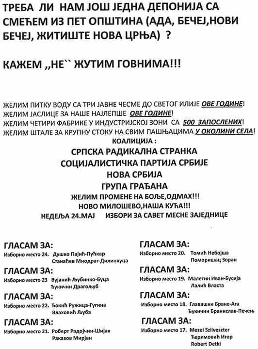 "PridIzborne" aktivnosti i su proticale u "najBoljom" redu, sve dok u "selo" nije počela, "doTad" neviđeno prljava kampanja, od strane koalicije SRS, SPS, NS i GG !!!