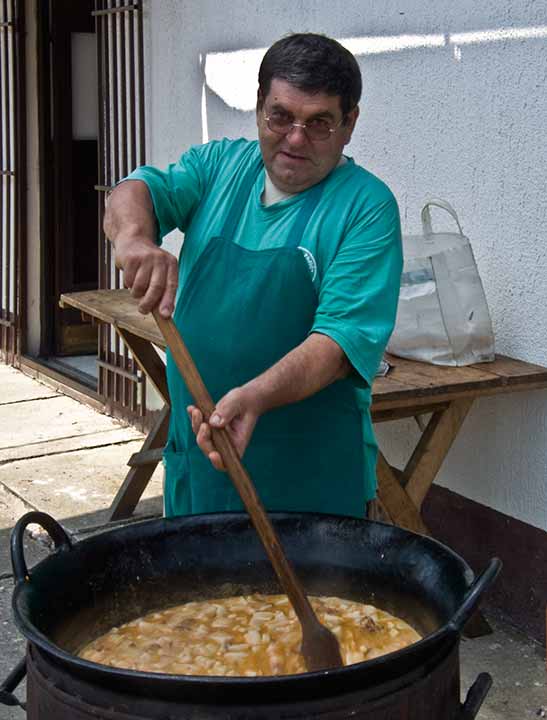 ..., a dok je kuvar Slobodan Popović ( "po miloševački - SlAbodan... ) u "bograč" kuv'o pasulj, "sas" suvim rebarcima, kolutovima kobasice i režnjevima slanine !!!