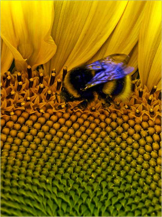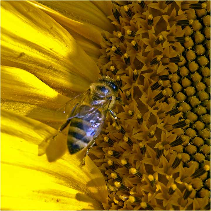 Na "naslovnu fotografiju" vidite nekol'ko pčela po ivici glavice, koje "radidu" svoj pos'o, a evo i jedne "uVeličate"...