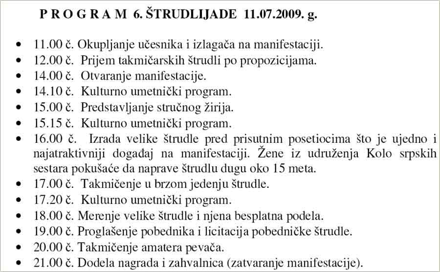 Od ove godine, Gibanicijada je registrovana manifestacija "pod nazivom" - Štrudlijada i zaštitnim logom, kog' nam je posl'o saradnik "naNaš sajt" - Cyber Deran...Evo programa:
