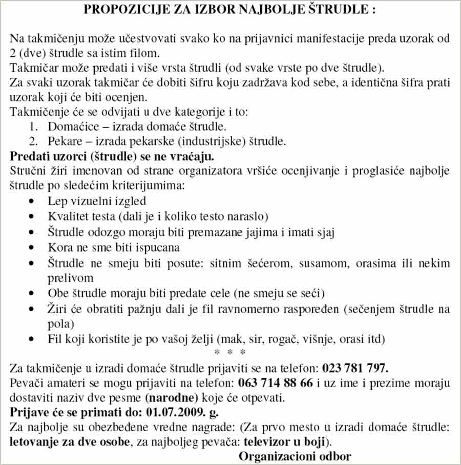 Opis: Vreme je da najavimo ovogodišnju Gibanicijadu ( neki još uvek uporno "govoridu" - Štrudlijada... ), koja će se "obDržati u subatu, jedanajstog ovog" !!!