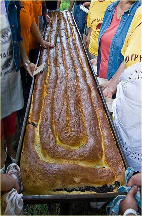 Opis: Tek "izPečena" i izvađena "izPećke" pekara Bate "Cvrce" - najduža gibanica ikad' napra'ljena, a na "planetu Zemlju" !!!