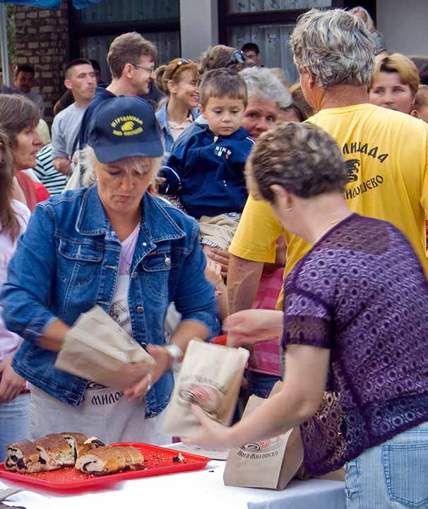 Pobedničku gibanicu je na "licitaciju otKupijo" Andrej Jovanović iz Beča, koji je "bijo uGosti u Kikindu", pa kad' je "čuvo" šta se događa "kodNas u Miloševo", nije mog'o da "odole", a da "neDođe"...
