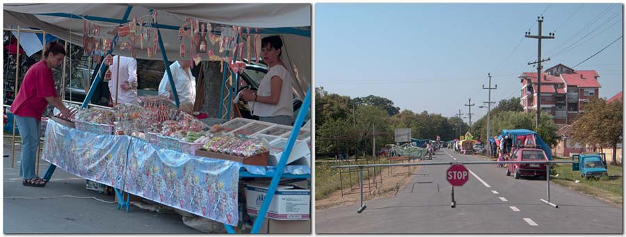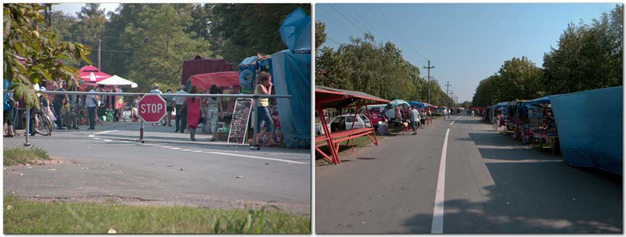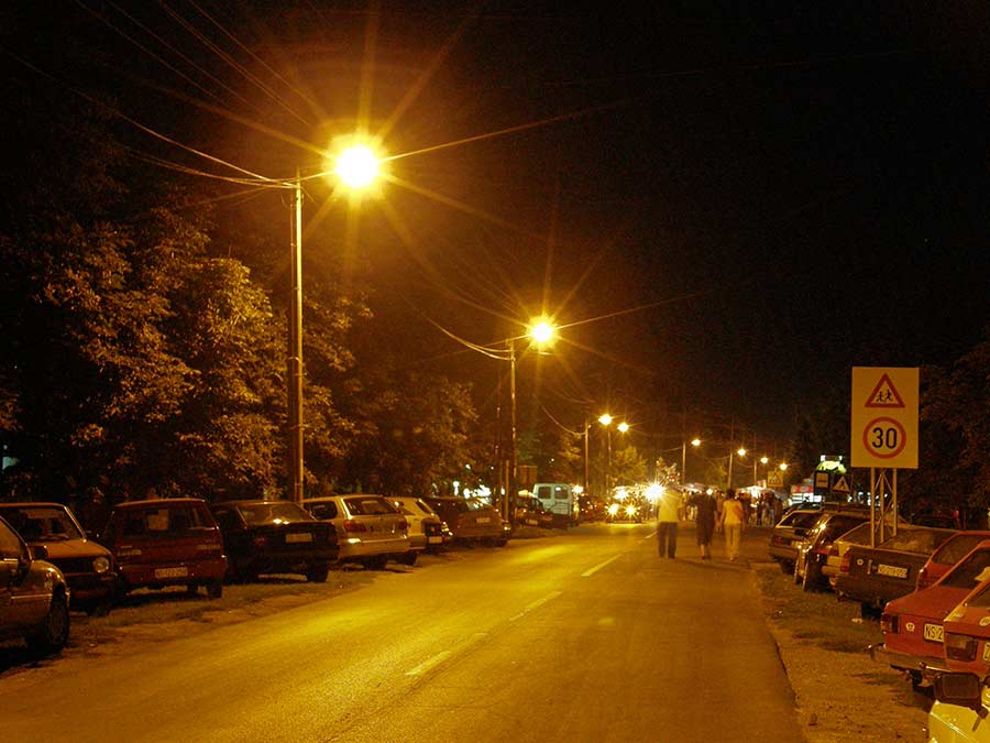 Opis: Fotografija je "uSlikata" prvog avgusta, u osam "cati" uveče i "kav" što vidite, "glavni sokak" je već "bijo priPrečen sas savobraćajnim" znakom - STOP i to zbog "krama"...