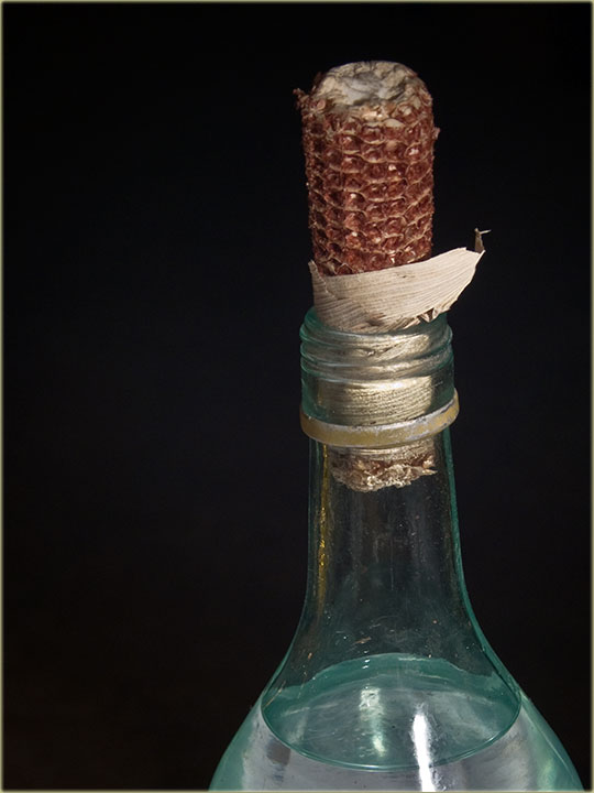 "Naši stari" su već "odavna proKljuvili", da rakija u "staklenu flašu", mož' da "diše, kav" da je "usuta uBure", jedino..., ako je čep "ot čokanjice" i to "obMotan sas ljuštikom" !!!