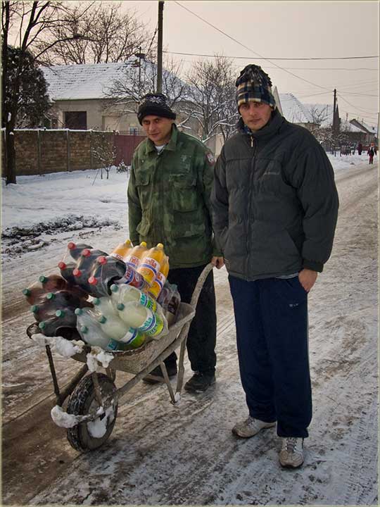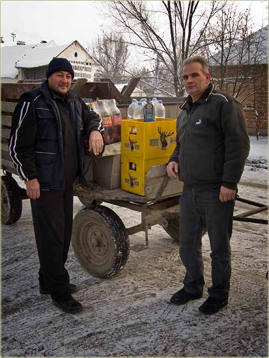Kako je zadnji' dana "zdravo jako ladno", mlogi' su "zaZimili matore, aftove" i traktore, a za biciklove je jako klizavo, tako da su "kubikaška" kolica idealna "zaTaj" pos'o...