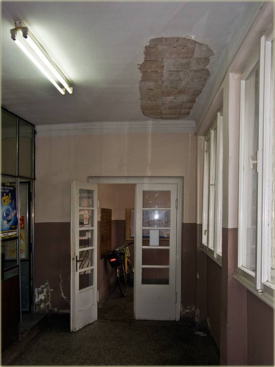 Iznad poslovnog prostora, postoji prazan stan, koji je isto tako u "lošo stanje". Stolarija je "odavna" propala, te i sneg i kiša "ulazidu unutri", što još više doprinosi propadanju cele zgrade...